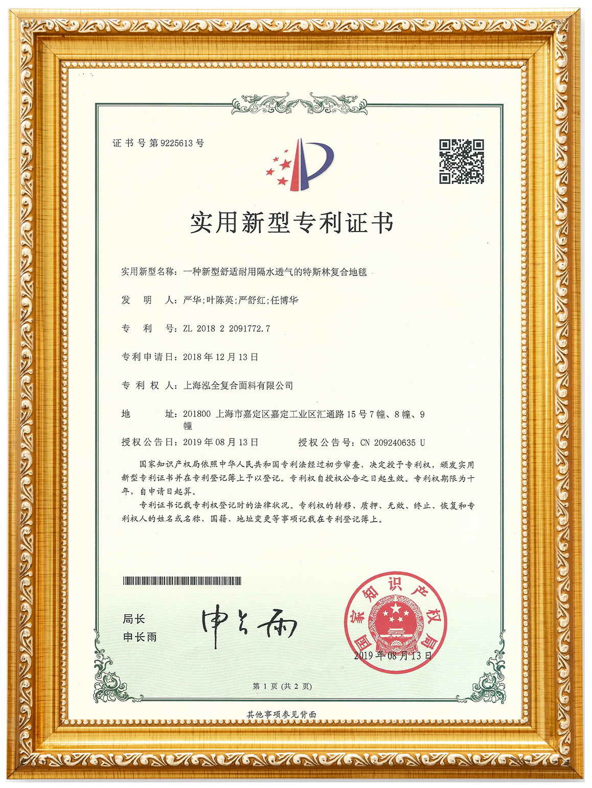上海泓全復合面料有限公司始創于2009年,是集研發、設計、生產、銷售、服務為一體的織布復合加工生產型企業。專業從事家紡面料、服裝面料、箱包面料、地毯面料和醫療護理、充氣產品、家居用品、廣告布等各種面料的復合。公司目前生產的成品涵蓋家紡系列、家居系列、老年人和嬰幼兒護理系列、醫療護理系列等。公司坐落于上海市嘉定工業區,西鄰昆山,北鄰太倉,交通便利,廠房面積達10000多平方米。